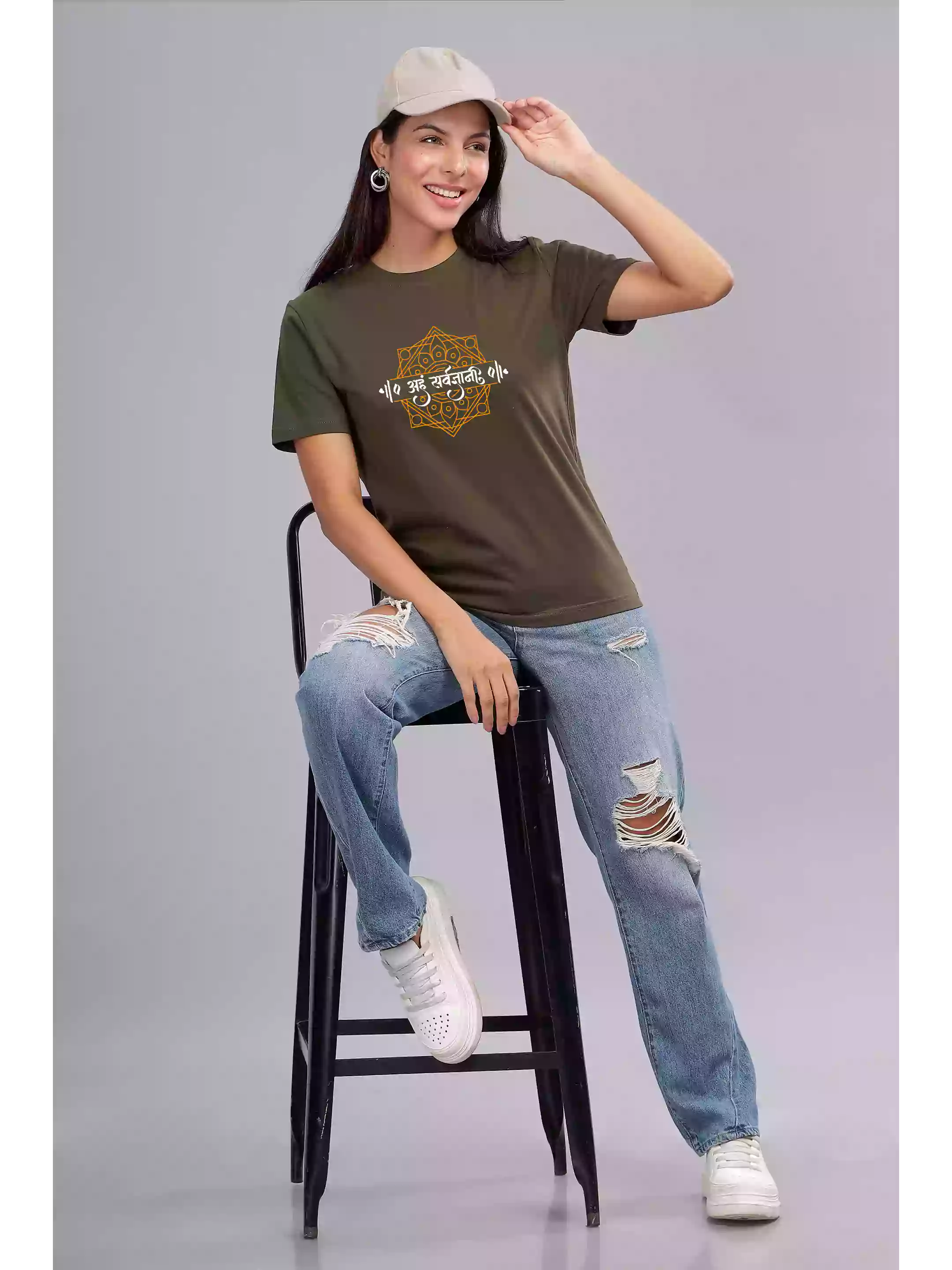 Aham Sarvagyani Olive - Sukhiaatma Unisex Graphic Printed T-shirt
