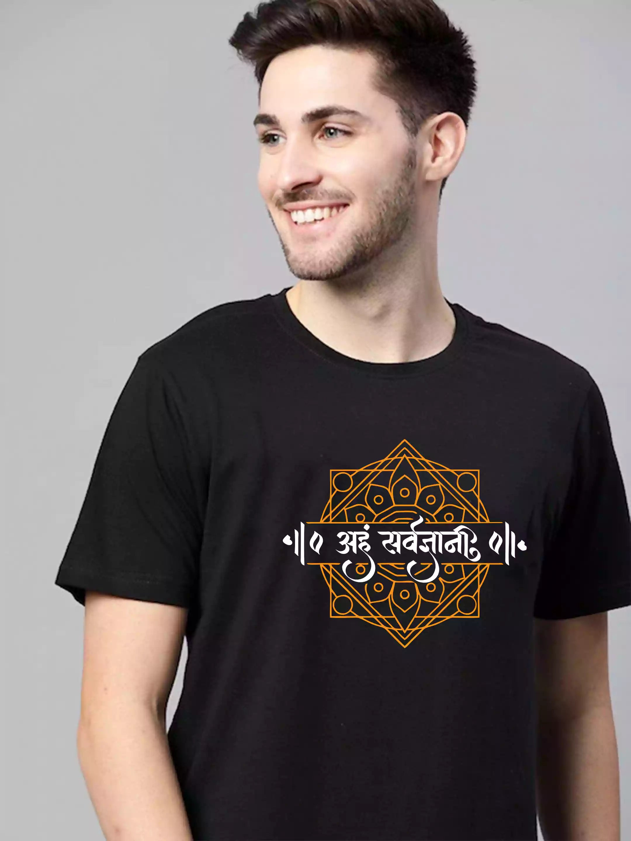 Aham Sarvagyani - Sukhiaatma Unisex Graphic Printed Black T-shirt