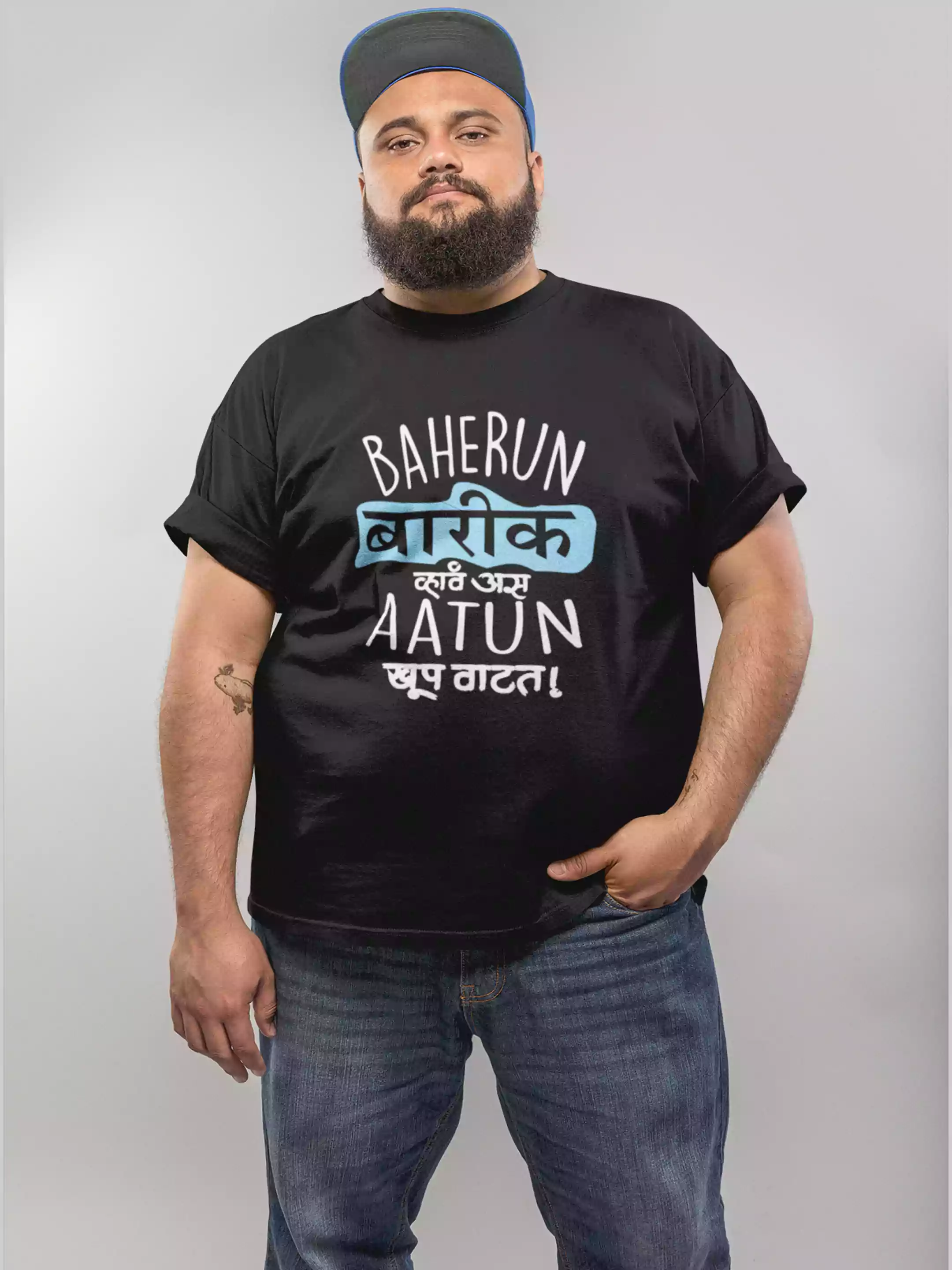 Baherun Barik - Sukhiaatma Unisex Marathi Graphic Printed Black T-shirt