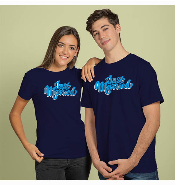 Just Married - Sukhiaatma Couple Graphic Printed T-shirt