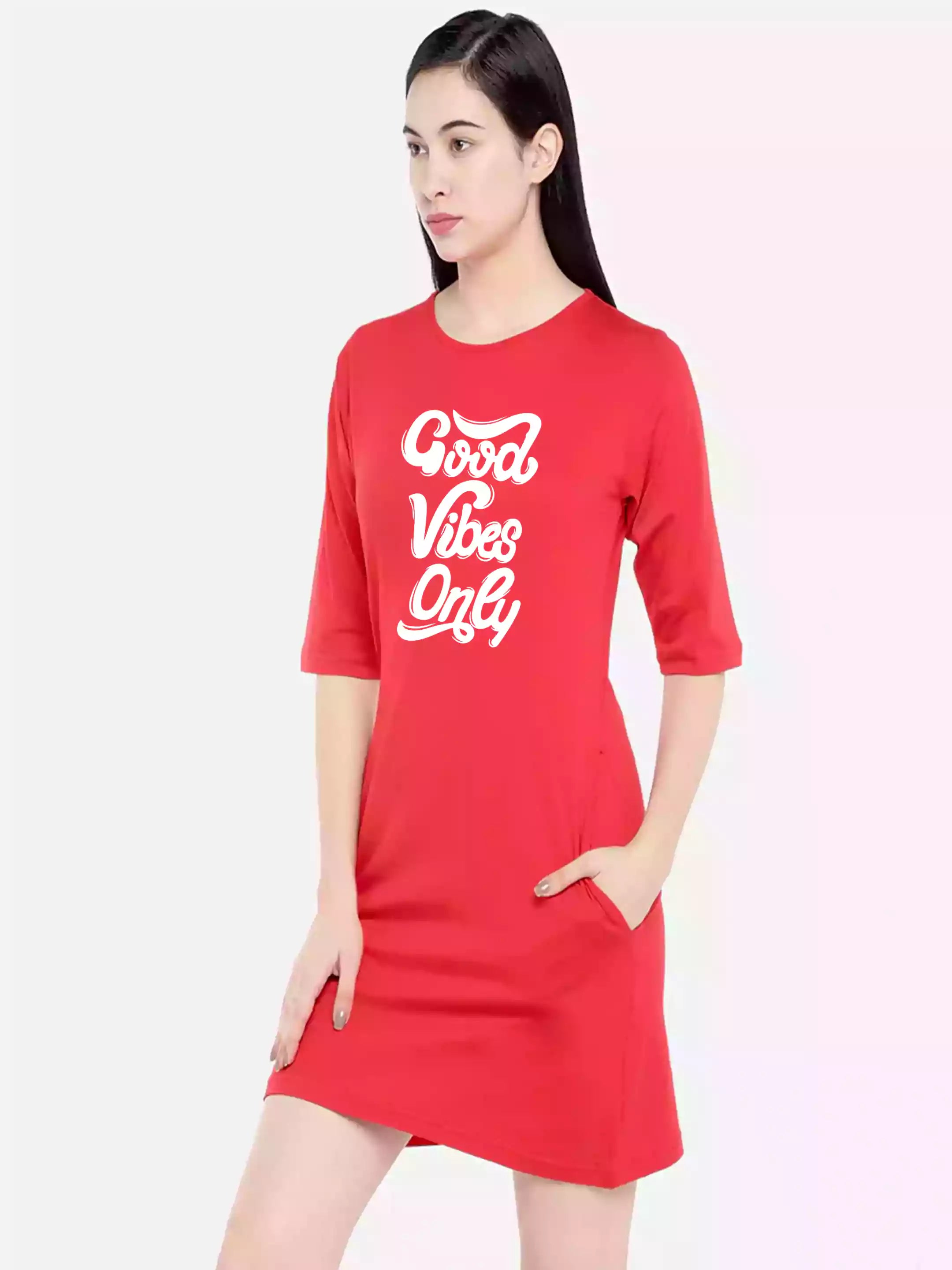 Good Vibes only Red - Sukhiaatma Designer T-shirt Dress