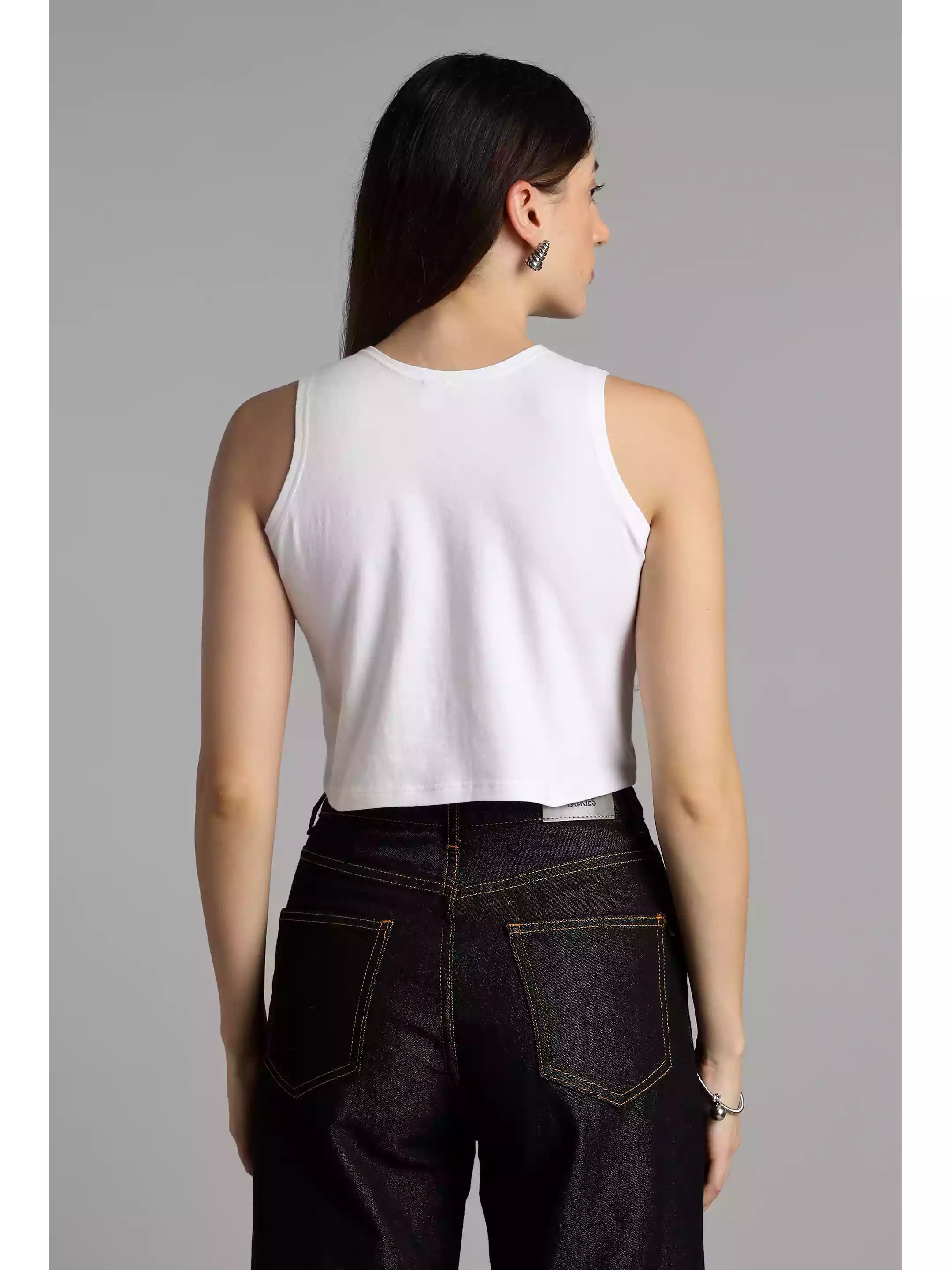 Size & Fit The model (height 5'8) is wearing a size M White Printed Regular fitted top High neck, sleeveless 100% Cotton Material & Care Cotton Machine Wash Specifications Sleeve...