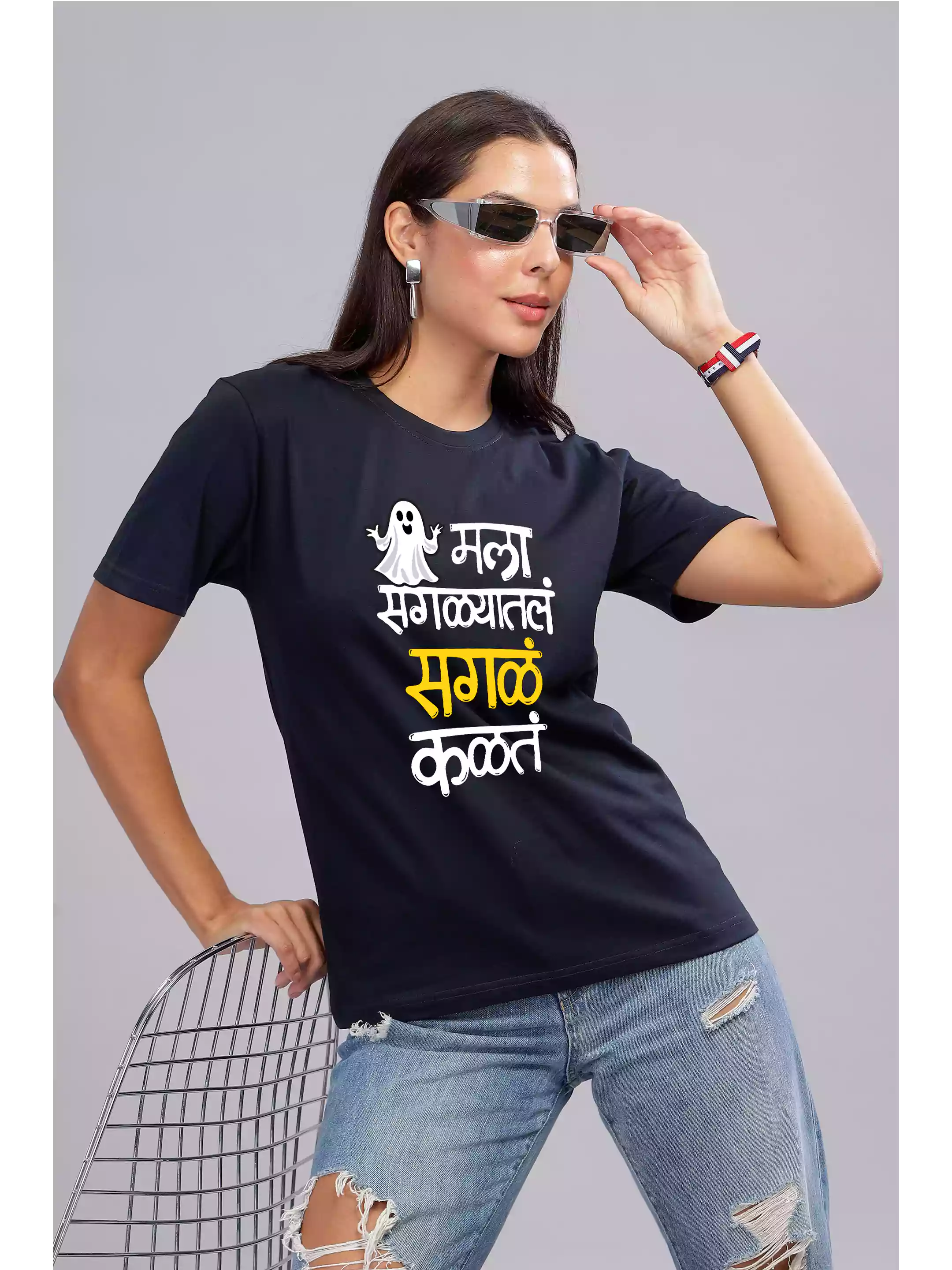 Sagla kalta - Sukhiaatma Unisex Marathi Graphic Printed Navy Blue T-shirt