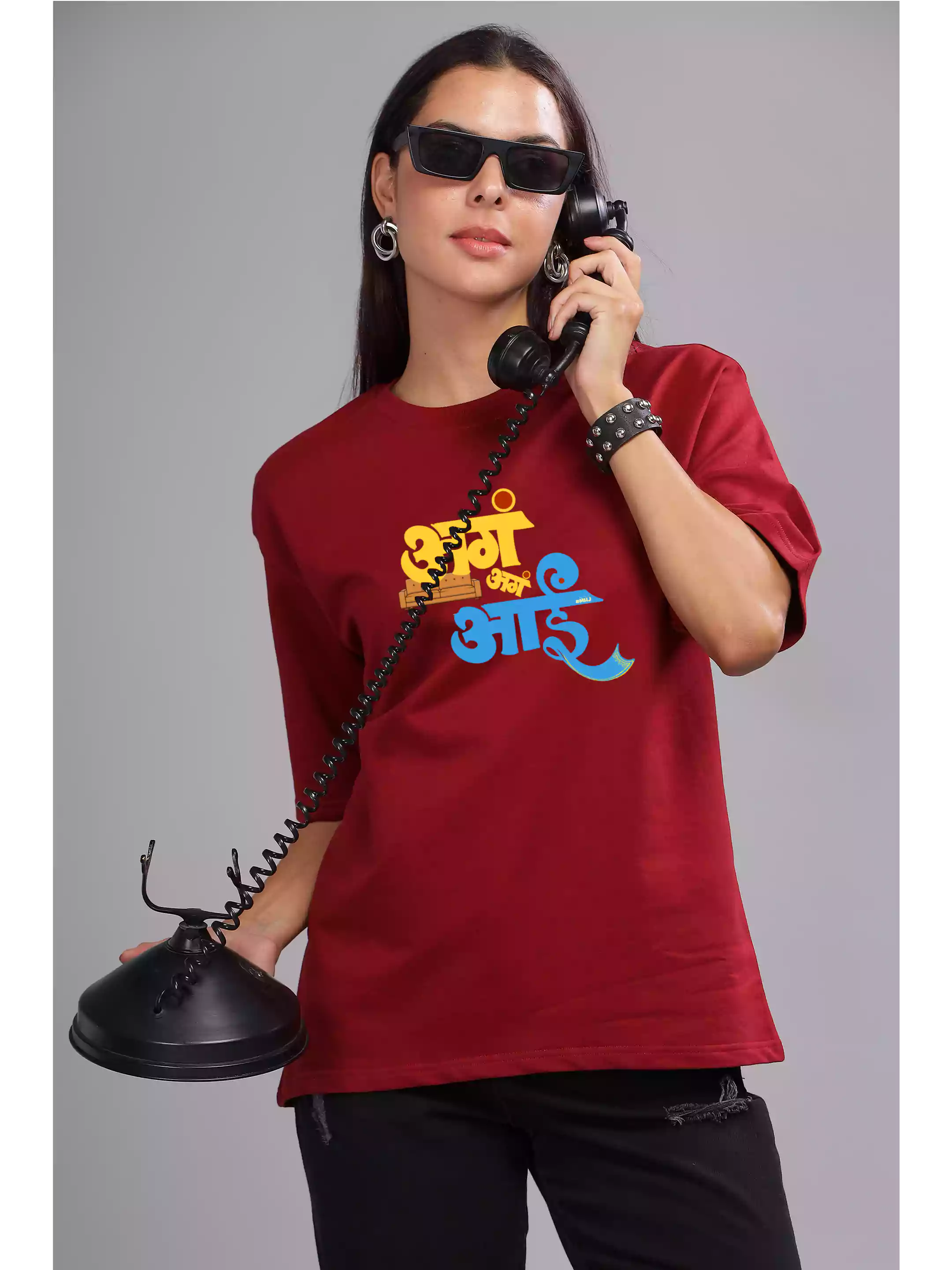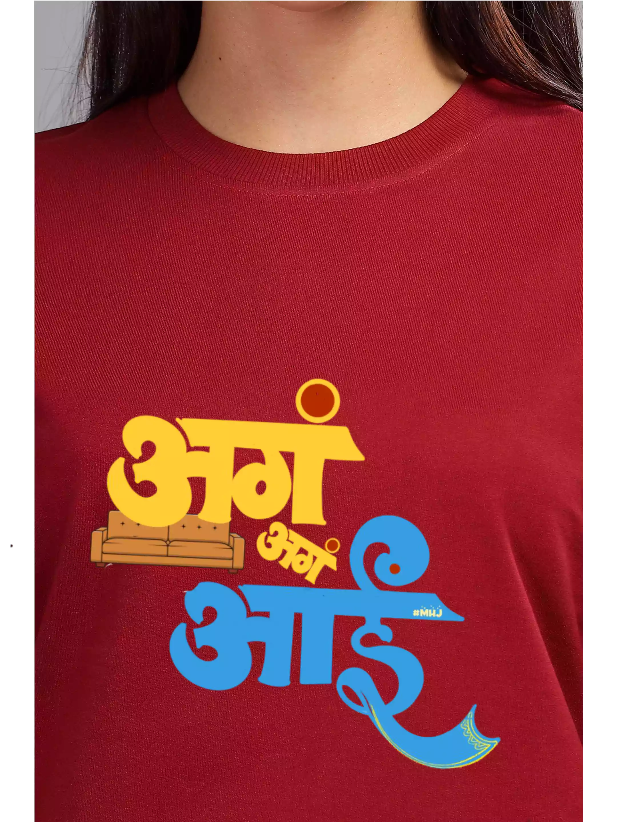MHJ - Aga Aga Aai Unisex Graphic Printed OS Maroon T-Shirt