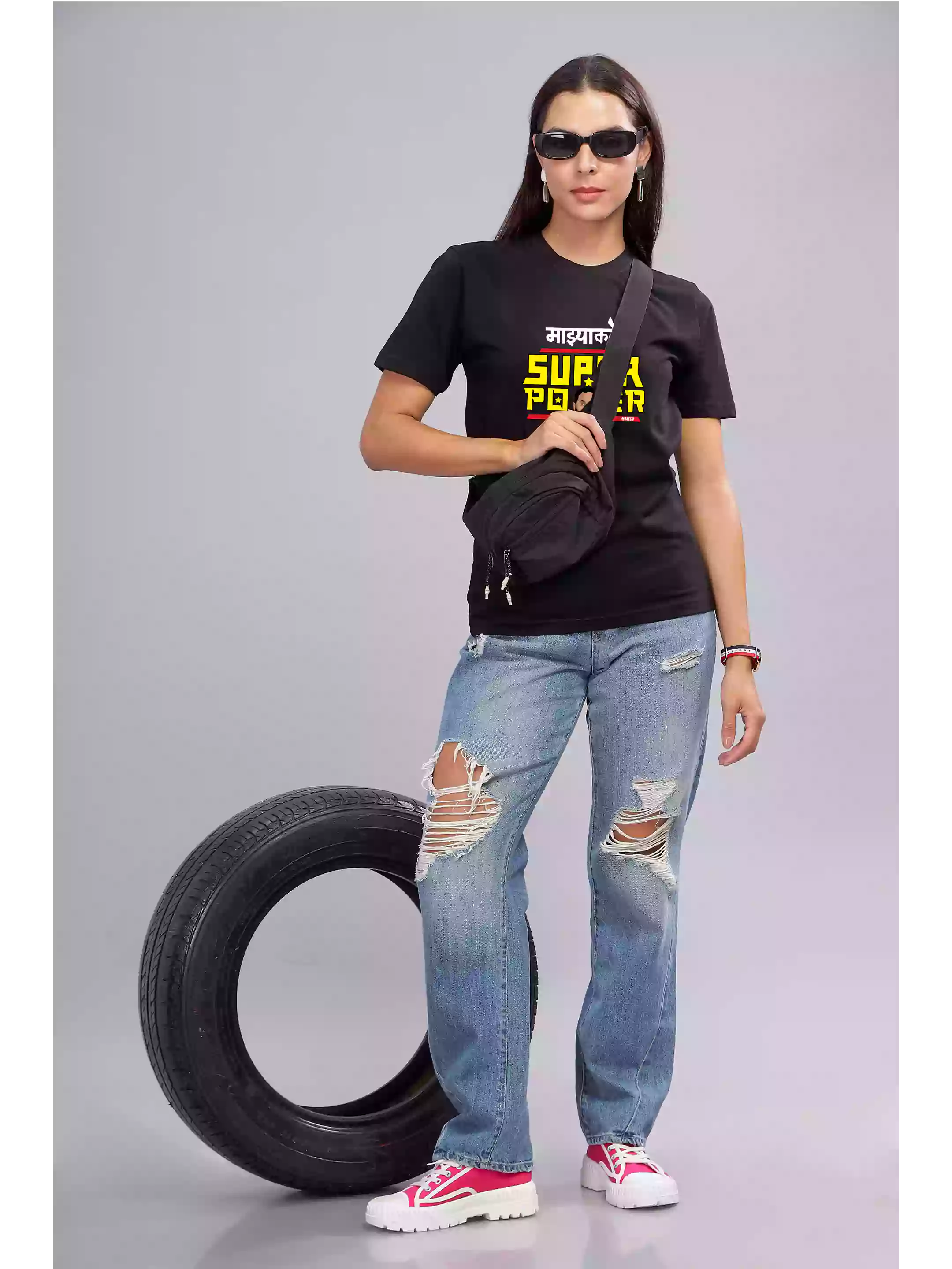 Maharashtrachi Hasya Jatra Official Merchandise. The Model (height 5.6") is wearing  size XS-36, Material: 100% Cotton 180 GSM (Bio Washed). Preshrunk to provide a soft texture. Fit: Relaxed Comfort...