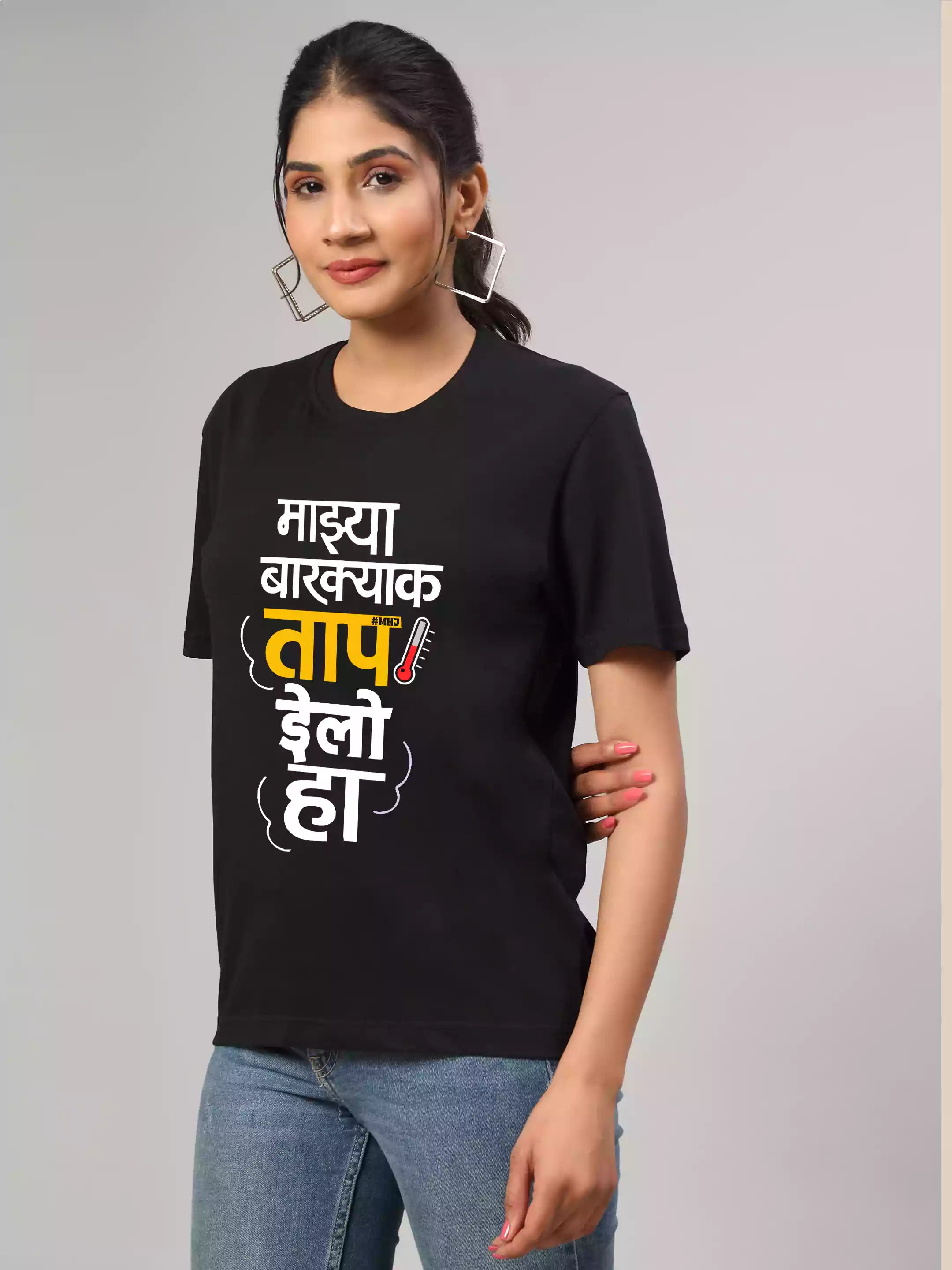 Maharashtrachi Hasya Jatra Official Merchandise. The Model (height 5.6") is wearing  size XS-36, Material: 100% Cotton 180 GSM (Bio Washed). Preshrunk to provide a soft texture. Fit: Relaxed Comfort...