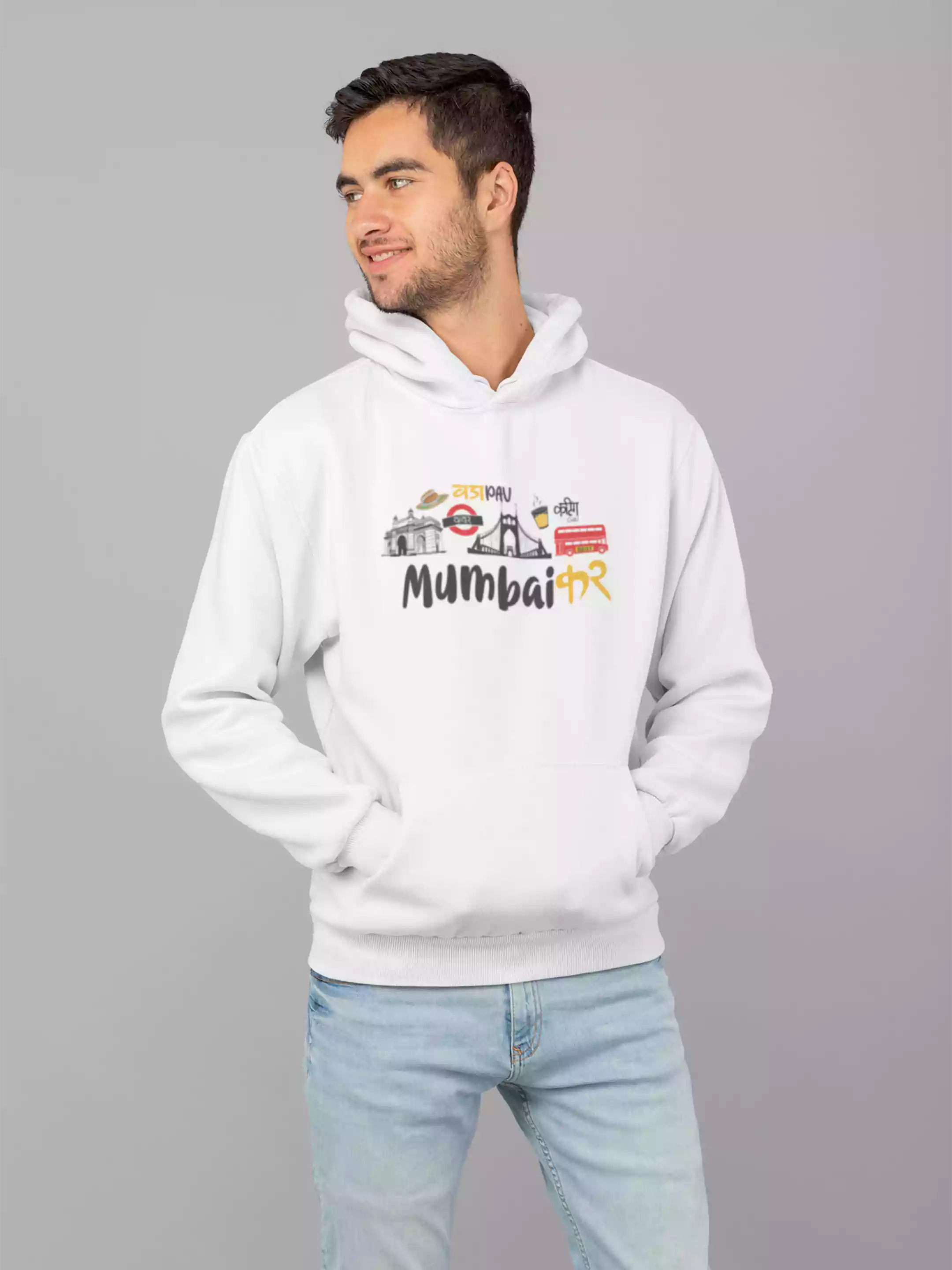 Mumbaikar - Sukhiaatma Unisex Graphic Printed White Hoodie