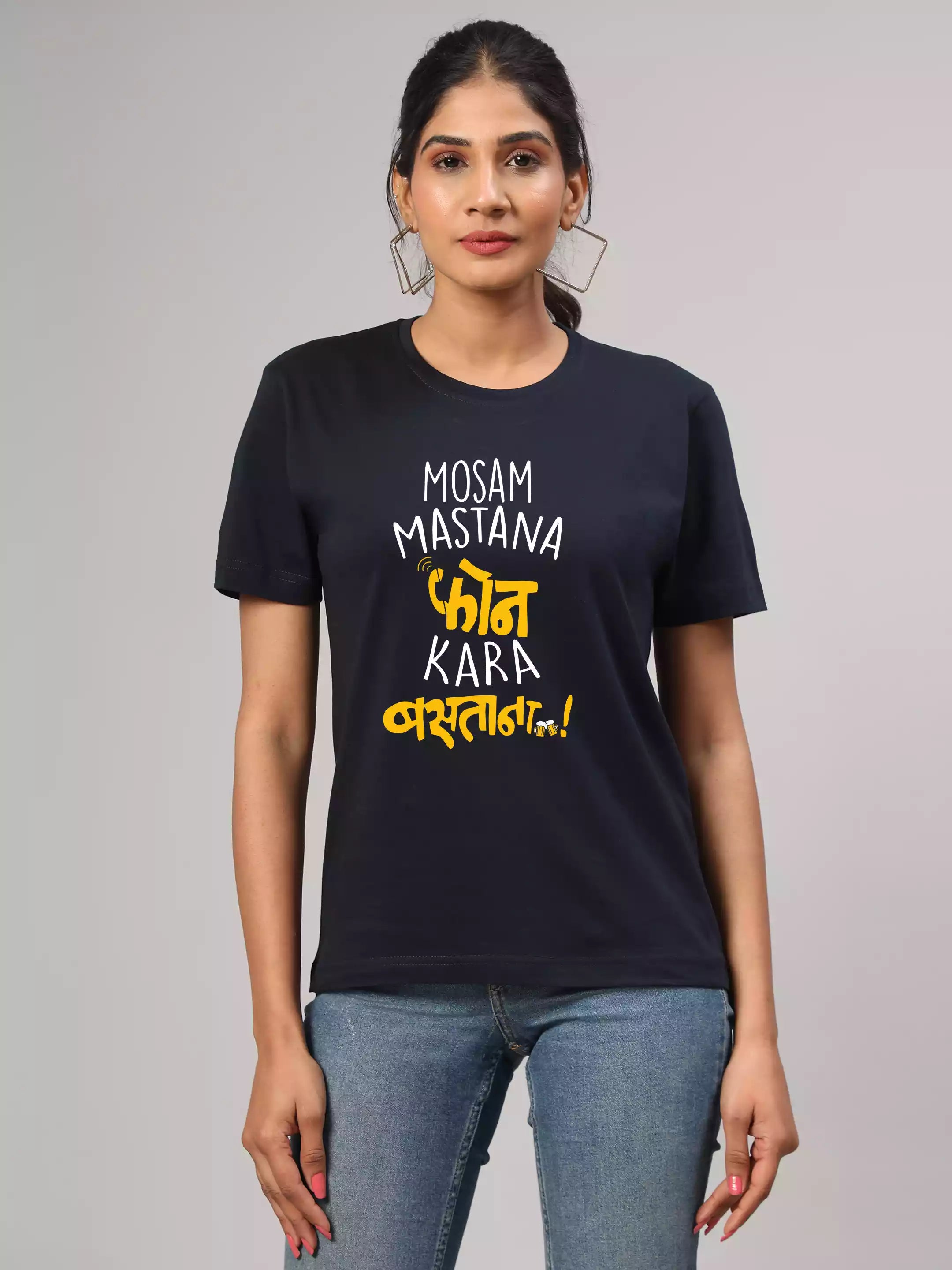 Phone Kara Bastana - Sukhiaatma Unisex Marathi Graphic Printed Navy blue T-shirt