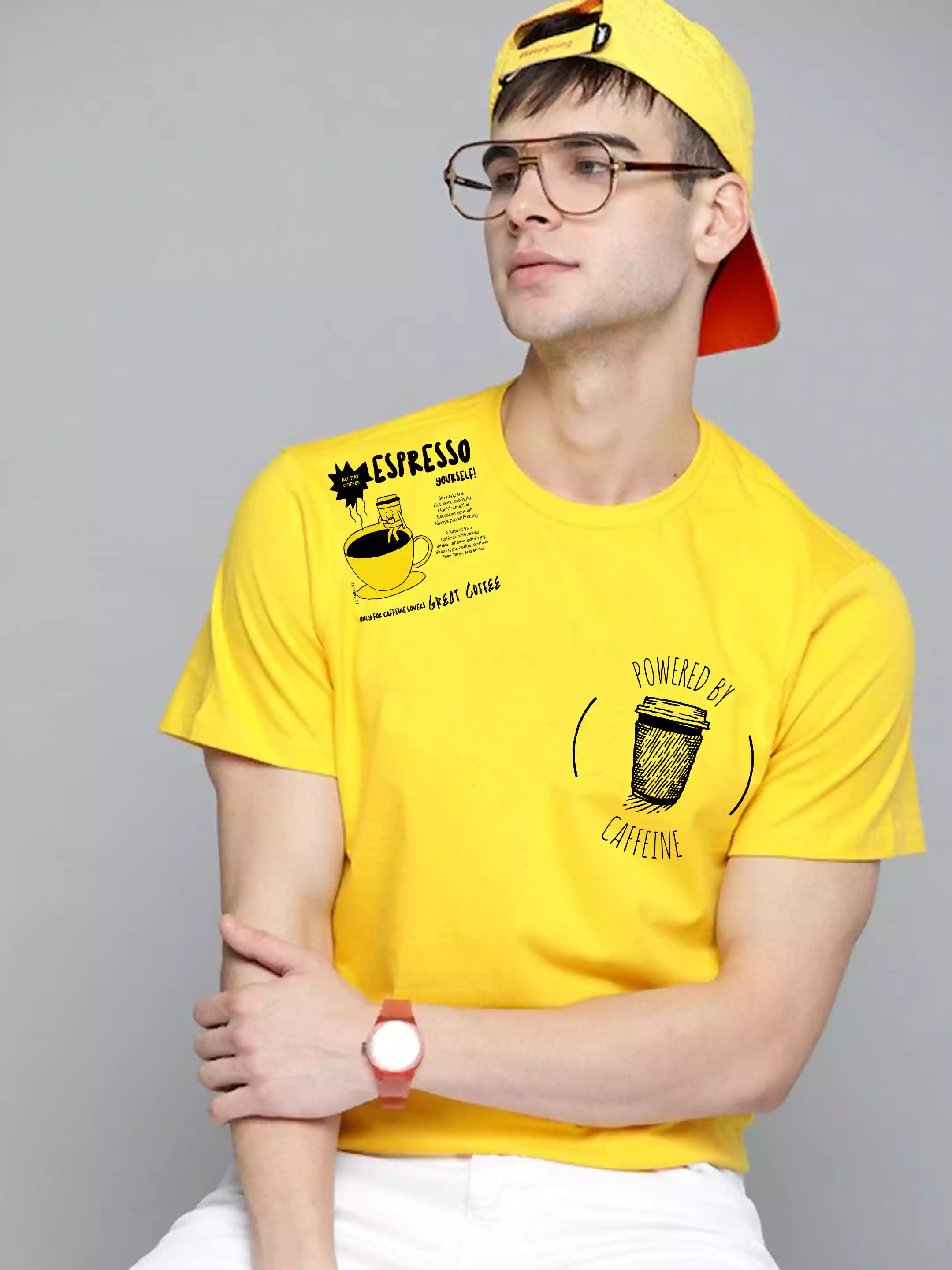 Powered by Caffeine - Sukhiaatma Unisex Graphic Printed Yellow T-shirt