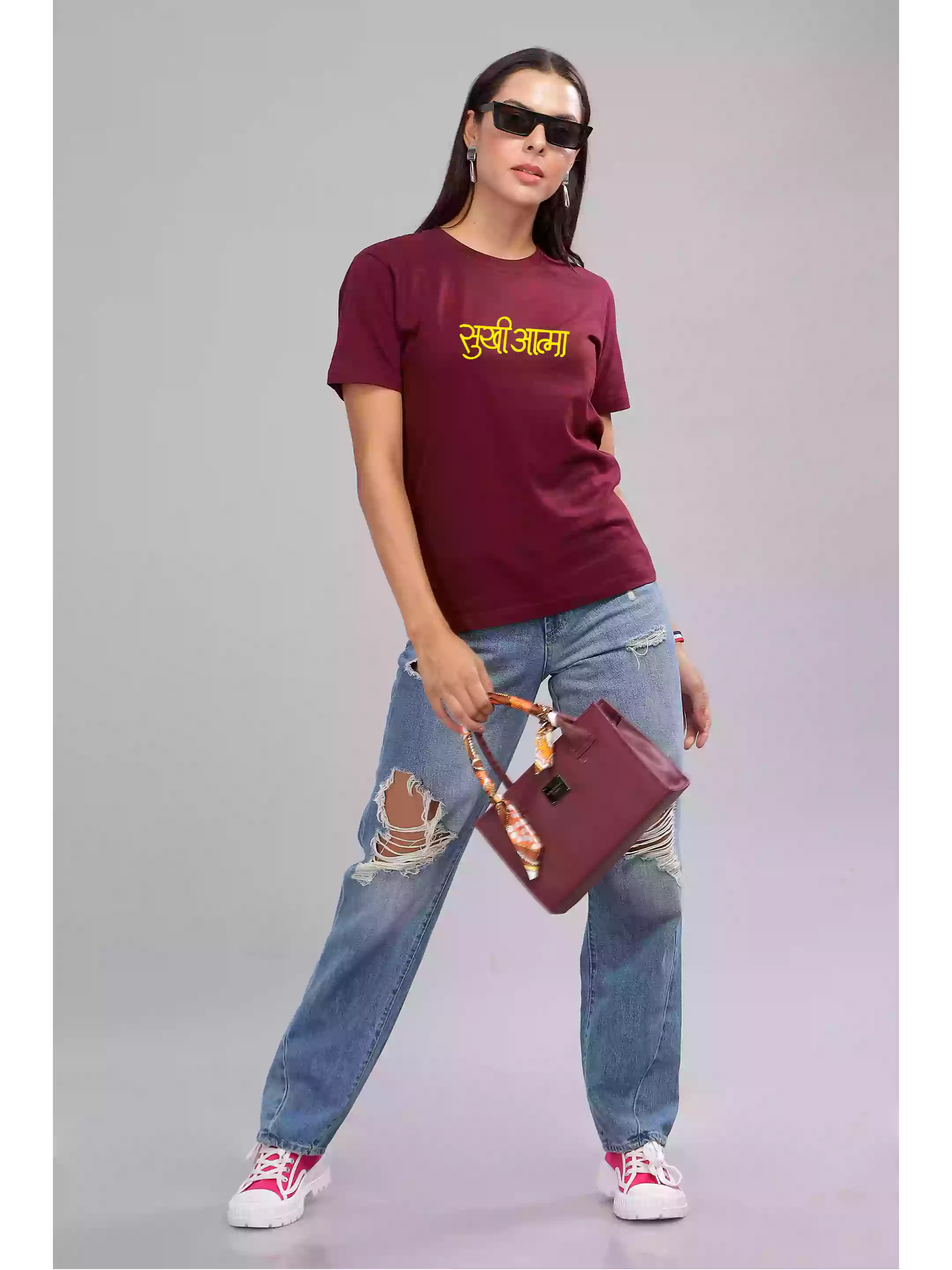 Sukhiaatma Maroon - Sukhiaatma Unisex Graphic Printed T-shirt