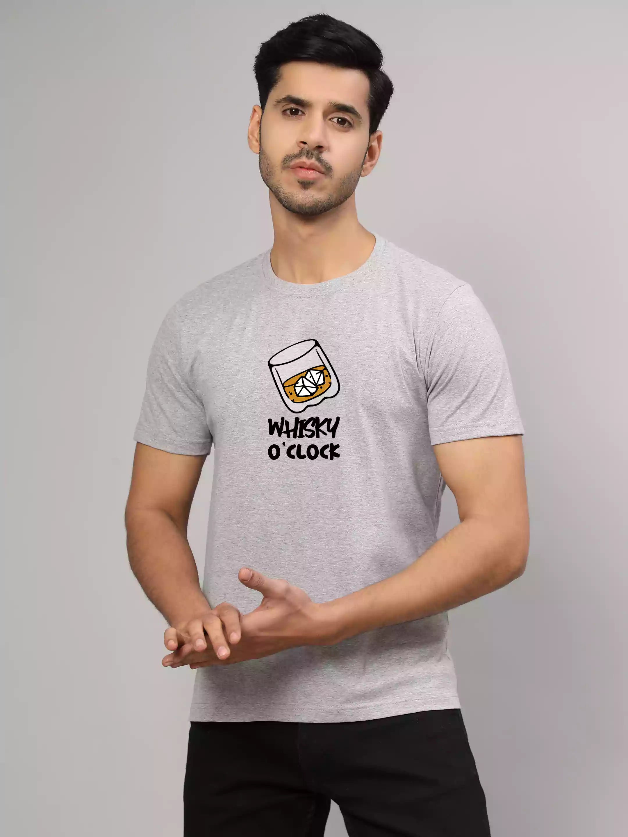 Whisky O'clock - Sukhiaatma Unisex Graphic Printed  Grey T-shirt