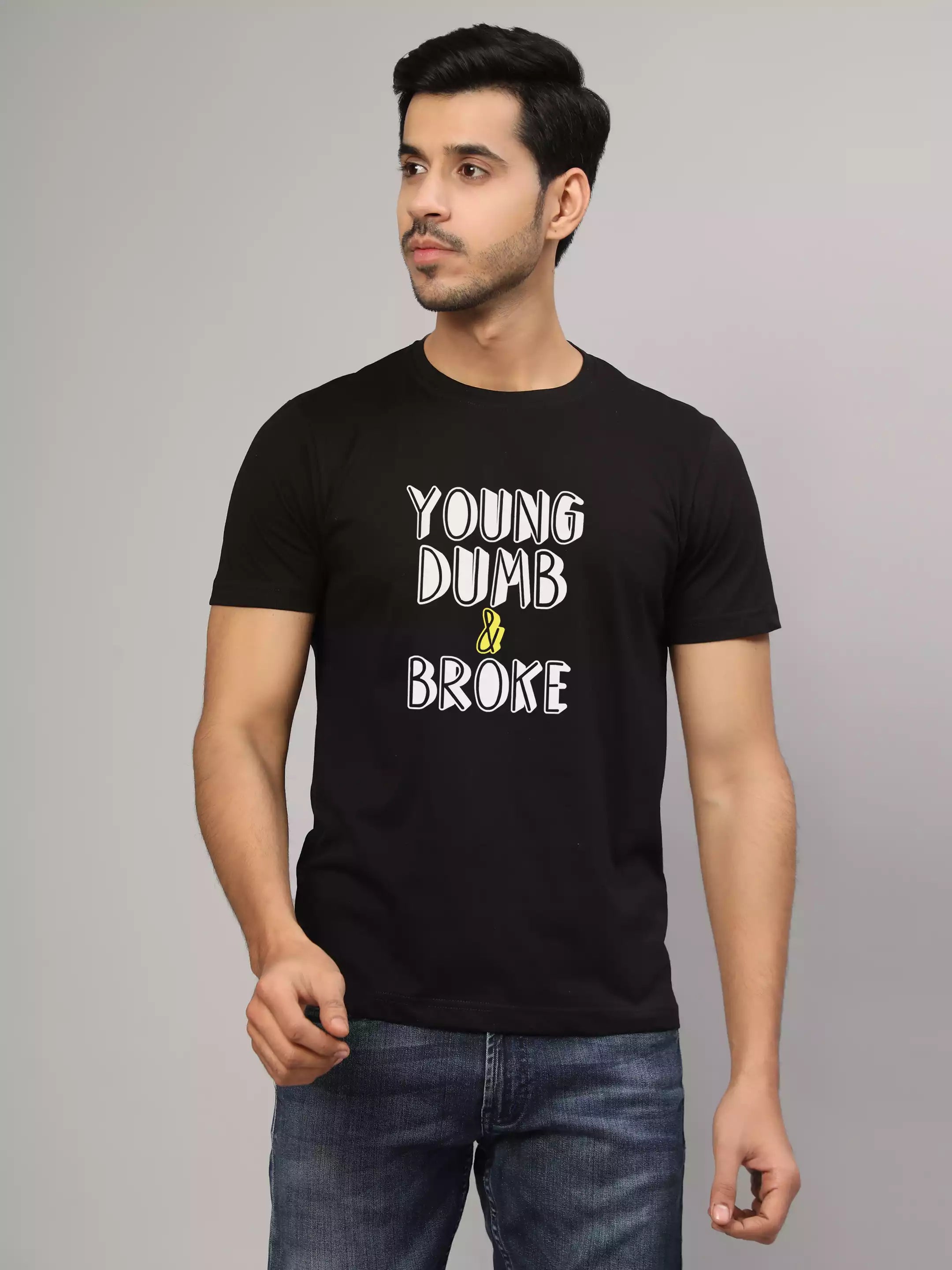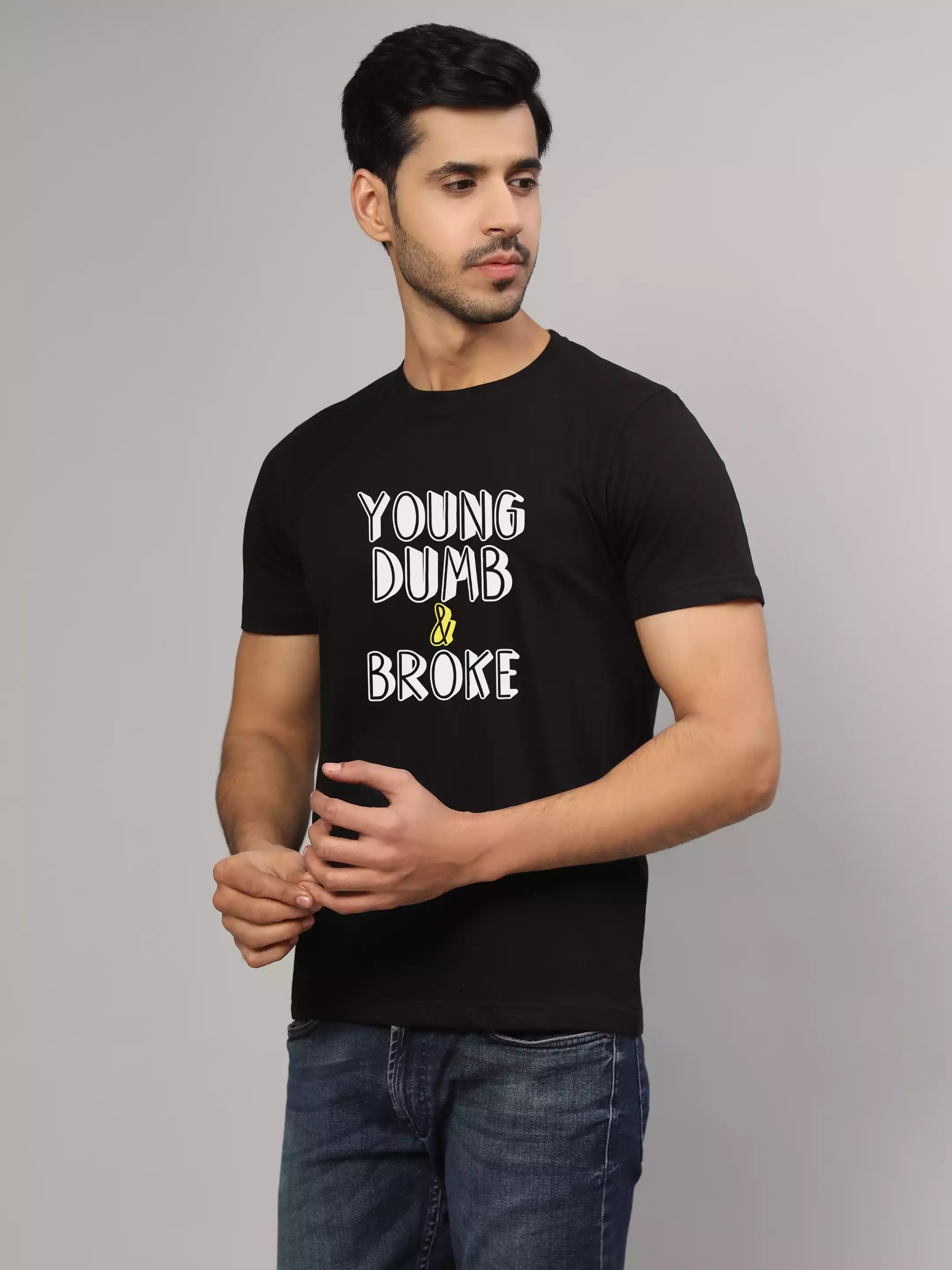 The Male model (height 5.6") is wearing  size M-40, Material: 100% Cotton 180 GSM (Bio Washed). Preshrunk to provide a soft texture. Fit: Relaxed Comfort Fit. Suitable for Daily Wear....