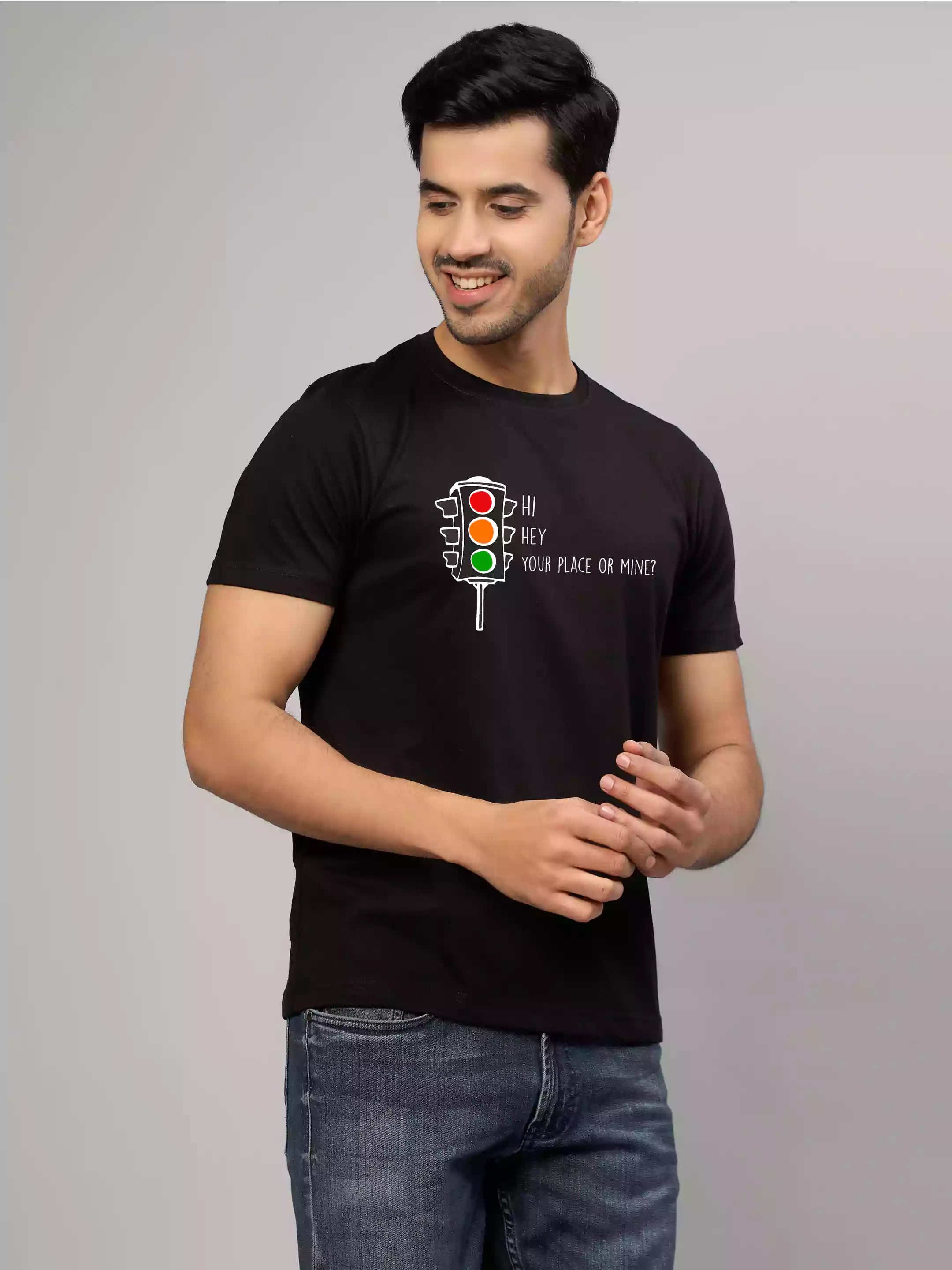 Your place or mine - Sukhiaatma Unisex Graphic Printed Black T-shirt
